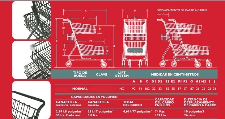 Carro Supermercado Doble canastilla. Ideal para lugares angostos o Peque os |